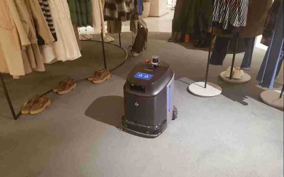 门店采用租用清洁机器人业务模式,,保洁员配合机器人,,保障清洁质量,,,,落实人+机结合清洁理念。。。由1台清洁机器人每日定时多次进行洗地、、、尘推、、、吸尘及清扫作业。。。保洁人员配合进行垂直清洁及边角清洁。。。机器人释放180H/月的工时,,,相当于1-1.5个岗位。。按时薪25元/小时算,,,,释放工时价值:¥4500/月。。。
